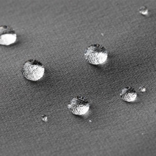 施以特殊加工的表面素材,有效彈排匯集水分為水滴狀,減輕水分滲入。與防水機能不同,水分湍急拍打的場域,或是坐在潮濕的環境,還是有水分滲入面料的可能性。