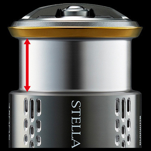 長動幅設計線杯,藉由增長線杯纏線部的高度,減輕拋投操作後半段的出線量,以提升拋投手感與飛投距離。