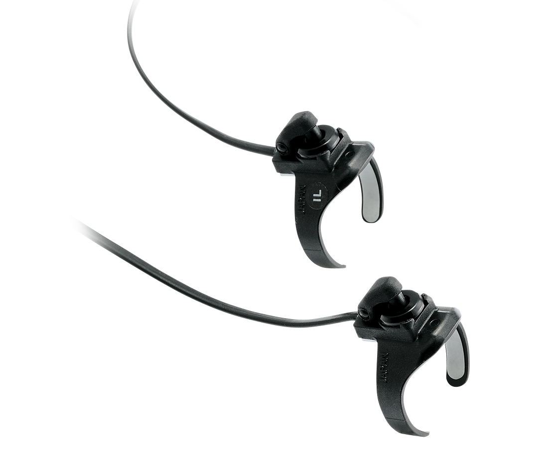 於下把位騎乘時仍可快速操作後變速。右變速把手 - 向高速檔位飛輪變速 / 左變速把手 - 向低速檔位飛輪變速。可安裝於車手把上的任何位置。