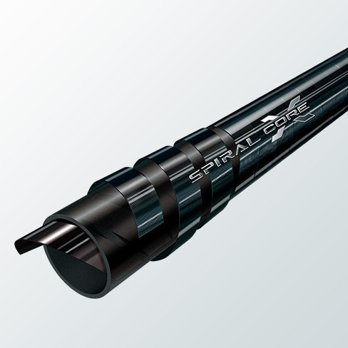 在SPIRAL X最外層將碳纖條以X狀包覆降低扭曲的強化構造。高度耐扭曲性能使釣竿的彎曲度能依照釣者所想來呈現,進而賦予更多俐落敏銳手感。