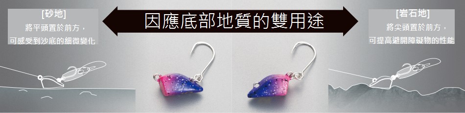 長年口耳相傳的黑鯛沉底釣法,主要可分為【静的作釣】和【動的作釣】。 相較【静的作釣】,利用NEGAKARINOTATE路亞的漂流、下沉、停留等動作相互組合的慢步調作釣;這次利用MC head(MC=Micro Concept)對高活性的黑鯛達到極佳誘食效果的就是【動的作釣】。 使用的方法很簡單!只需拋投後,至沉底時再收線的反覆作釣。 基本上,於砂地地形,可將平頭置於前方,在河川的砂質底層,容易蒐集到地形變化情報。 將尖頭置於前方,在底部較硬或是岩石較多的地形可減少掛底情況發生。 因應魚的活性,交替使用NEGAKARINOTATE路亞和MC Head,就可愉快地攻略黑鯛沉底釣法! 專家 嶋田 仁正 |