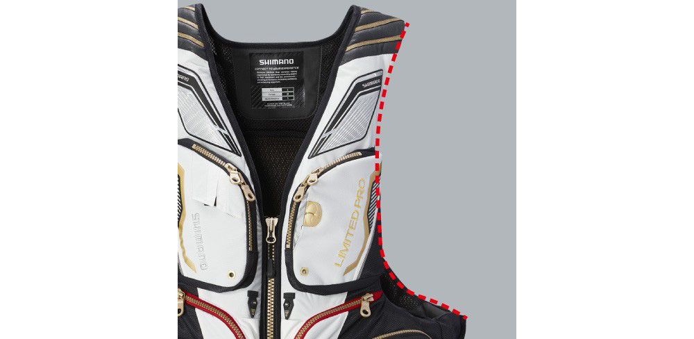 腋下開口的加深設計、方便作釣時的手臂活動