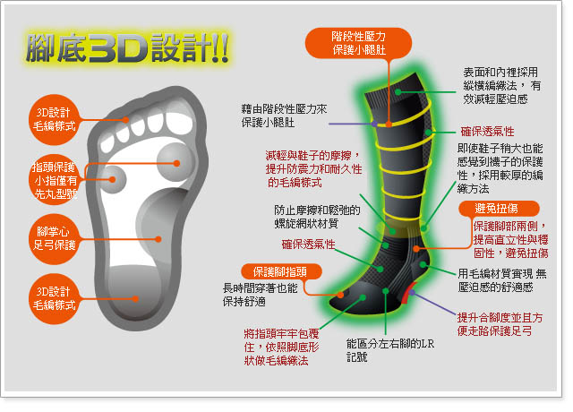商品類 > 衣著類、帽子、手套 > SC-012J ‧ WICKTEX. 3D 構造襪 (先丸)