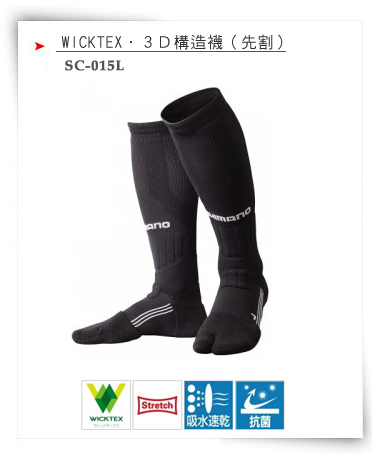 商品類 > 衣著類、帽子、手套 >SC-015L --WICKTEX.3D構造襪(先割)