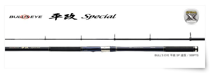 釣魚更有效率、拋投距離更遠的平政Special是遠投誘餌籠釣法裡專門攻略青魽而推出的特別版仕樣,搭載強悍韌性的SPIRAL X技術及竿身上部特別的強化設計更能確保遠投竿的優異性能,甚至連以前無法拋投到的黑潮洋流區域都在它的射程距離之內,搭載的SPIRAL X核心技術能充份的支撐大物的反衝拉力,滿弓時的完美弧度能讓釣友更安心、有效率的釣上破紀錄體型的魚種。此外,特殊合成橡膠強化過的高質感握把及尾栓總成更能帶來高度的安定感,是兼具質感及高挑戰能力的遠投竿仕樣。