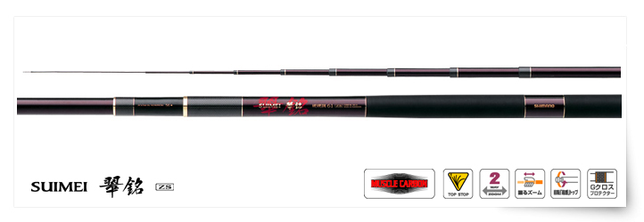 「點的釣法」是在有落差的上游部,在較狹小處展開的。就像狙擊手必須一發決勝負一般,必須要正確地攻克目標點,輕快地釣起。從上流順流而下,落差變得較少時,則必須將「線」與「點」合起來攻擊。因此仕掛要比竿子短一些才容易操作。這樣的釣法需要輕巧無重感,用單手就能輕鬆操作的竿子,竿身不晃動能確實投入目標點的竿子,感度優秀能立即配合就餌釣起的竿子。為了對應較短的仕掛,沒有就餌時的異樣感,柔軟的竿尾是不可或缺的。「先攻YAMAME ZD」「翠微ZT」只在竿尾先端部採用柔軟的實心敏銳竿尾。完美執行「點的釣法」。