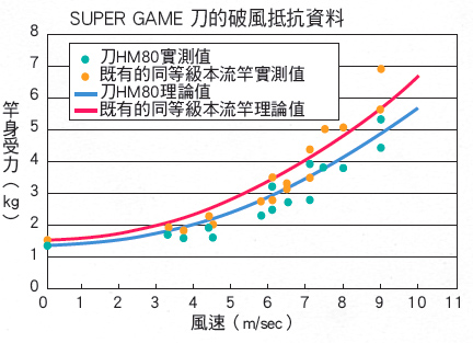 流竿比較的結果,破風抵抗力成